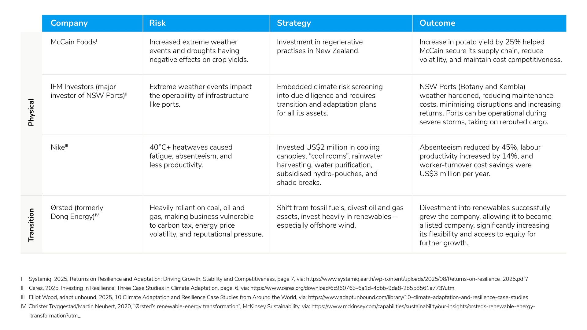 Table 4: 2023-2025 case studies of companies building climate resilience