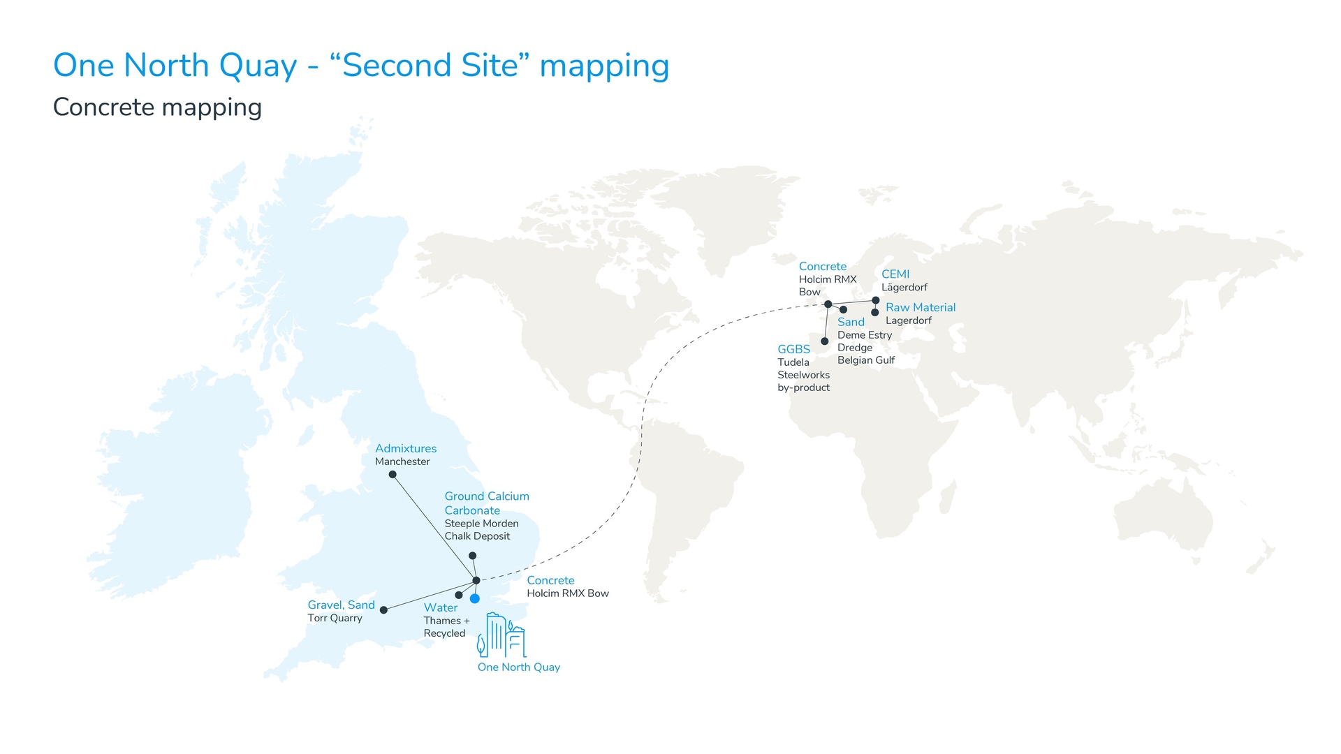 The biodiversity impacts of construction often occur far from the project site, at the locations where materials are extracted - referred to as a ‘second site’. For this project, we have been working to map the scope of our ‘second site’ associated with structural materials. This was achieved through live tracking of all structural construction materials entering the site boundary, combined with close collaboration with suppliers to identify downstream sources of raw materials.