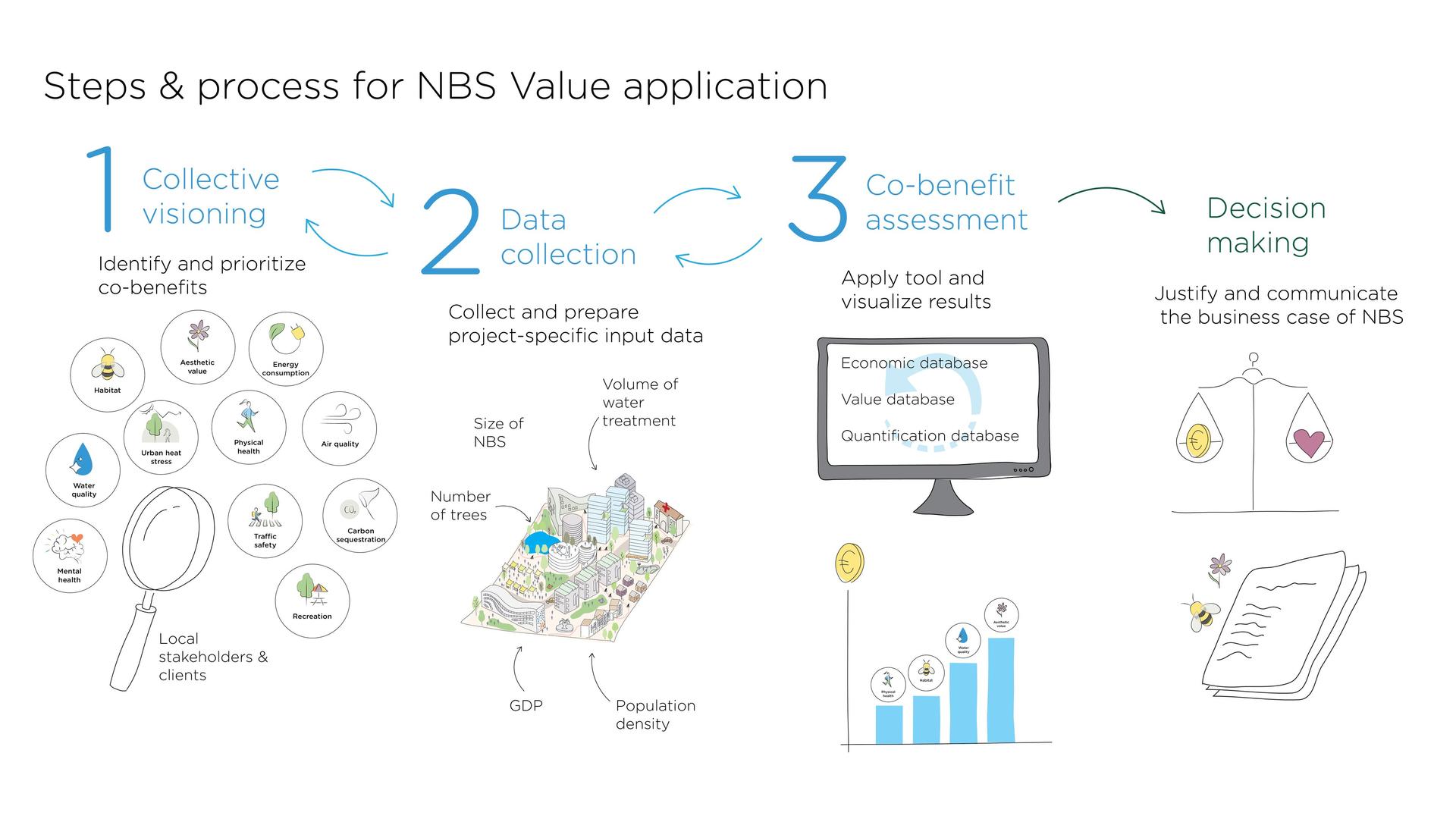 Following this, NBS Value is applied to produce an estimate of the lifelong benefits and socio-economic value of the proposed NBS and illustrative graphs for impactful communication. Finally, the tool output can be directly embedded in the business case to justify NBS expenditure and budgeting.